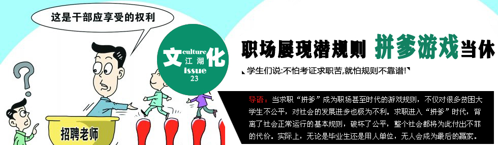 國內(nèi)教育就業(yè)調(diào)查機構(gòu)曾做過一項相關(guān)調(diào)查,與管理階層的子女相比,農(nóng)民工與城市弱勢群體子女,無論在升學還是就業(yè)的數(shù)量與質(zhì)量上,比例都遠遠落后。在當下的社會,很多年輕人認為自己學得好,有能力,不如有個“成功”的老爸!捌吹币呀(jīng)成為一條社會游戲法則,升學拼爹,求職亦拼爹。