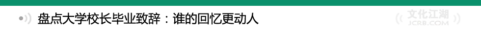 畢業(yè)致辭的演講臺,算是一個秀場。明星校長們在學子即將踏入社會的人生拐點上“挺身而出”,或鞭策或煽情或鼓勁地來上一段寄語,將菁菁校園最后的一個定格,烙在搖曳中的學位服上。畢業(yè)季的空氣,除了懷念、感傷和騷動,又被涂抹上了一種黏著責任感的催化劑。