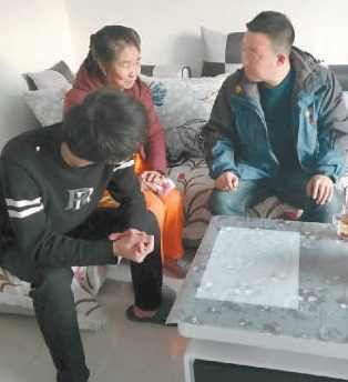 圖:嚴啟發(fā)(右一)到易地搬遷后農戶新居進行走訪。