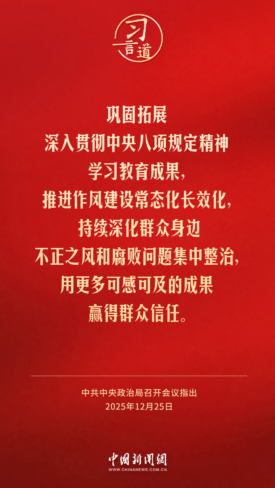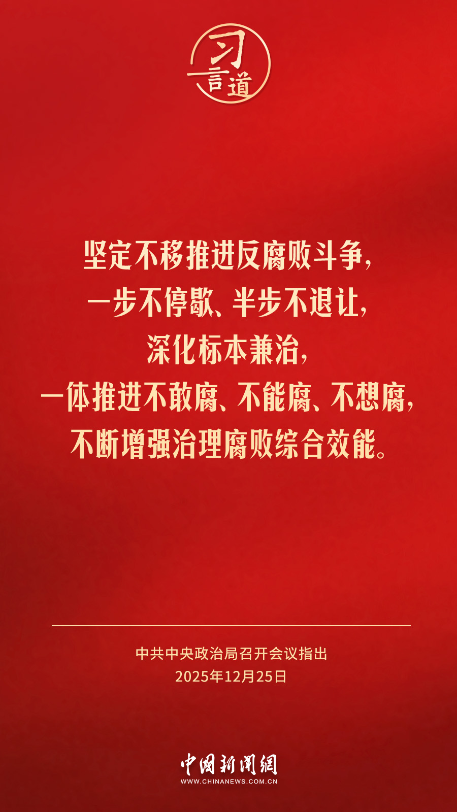 中共中央政治局12月25日召開會議,聽取中央紀(jì)委國家監(jiān)委工作匯報(bào),研究部署2026年黨風(fēng)廉政建設(shè)和反腐敗工作。中共中央總書記習(xí)近平主持會議。會議強(qiáng)調(diào)——