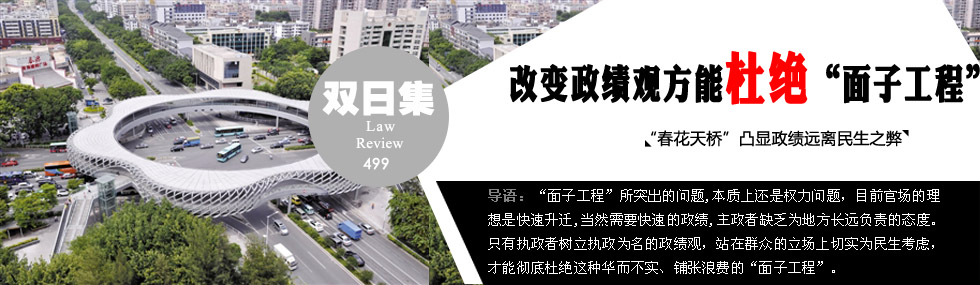 當(dāng)前各城市中,“面子工程“幾成頑疾,治不勝治,曝不勝曝。牽涉公共設(shè)施營(yíng)建的項(xiàng)目,其勘察、設(shè)計(jì)、施工、監(jiān)理、驗(yàn)收必須依法而行,不能跨越必經(jīng)法律程序,給腐敗滋生留下空間。同時(shí),對(duì)廣大納稅人而言, 對(duì)每一項(xiàng)公共開(kāi)支,都應(yīng)有追問(wèn)真相的權(quán)利,行使監(jiān)督的勇氣。