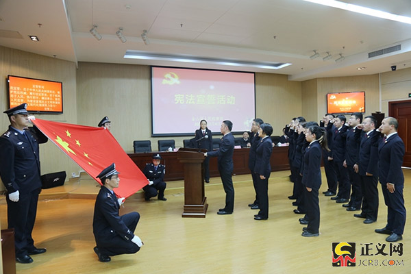 正義網(wǎng)上海12月7日電(通訊員 金檢宣)在第七個國家憲法日來臨之際,為弘揚憲法精神,維護憲法權(quán)威,增強干警榮譽感、歸屬感、自豪感,12月4日,上海市金山區(qū)檢察院舉行憲法宣誓活動!