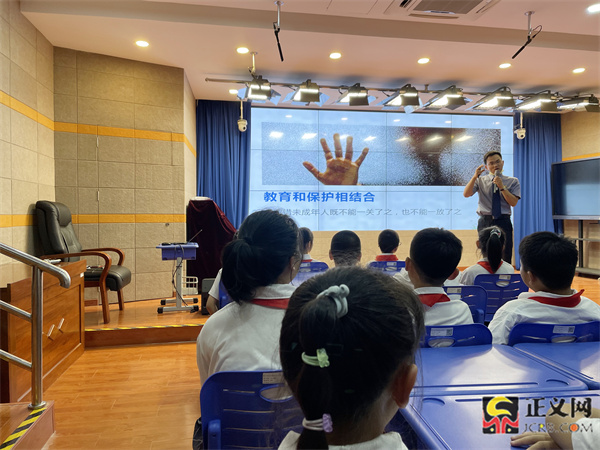 開學(xué)第一天,上海市虹口區(qū)檢察院檢察官助理、多倫同心小學(xué)法治副校長奚之強(qiáng)以“全方位保護(hù)少年的你們”為題,給同學(xué)們上了一堂精彩的法治課,引導(dǎo)同學(xué)們提升自我保護(hù)意識(shí),遠(yuǎn)離違法犯罪。(上海市虹口區(qū)檢察院供圖)