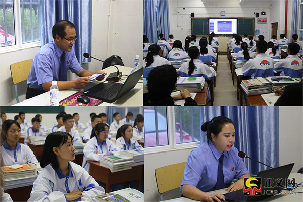 開學(xué)第一天,云南省昌寧縣檢察院檢察官走進(jìn)昌寧縣第一中學(xué),通過播音室的局域網(wǎng)絡(luò),以音視頻形式開展法治講座,全校1000余名學(xué)生在各自教室同步收看。(云南省昌寧縣檢察院供圖)