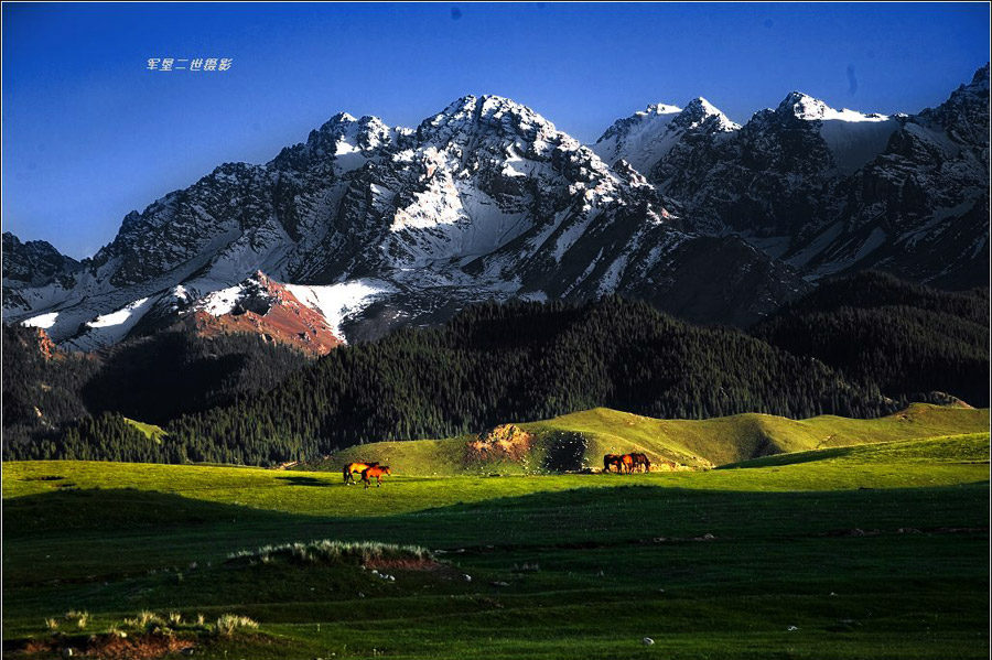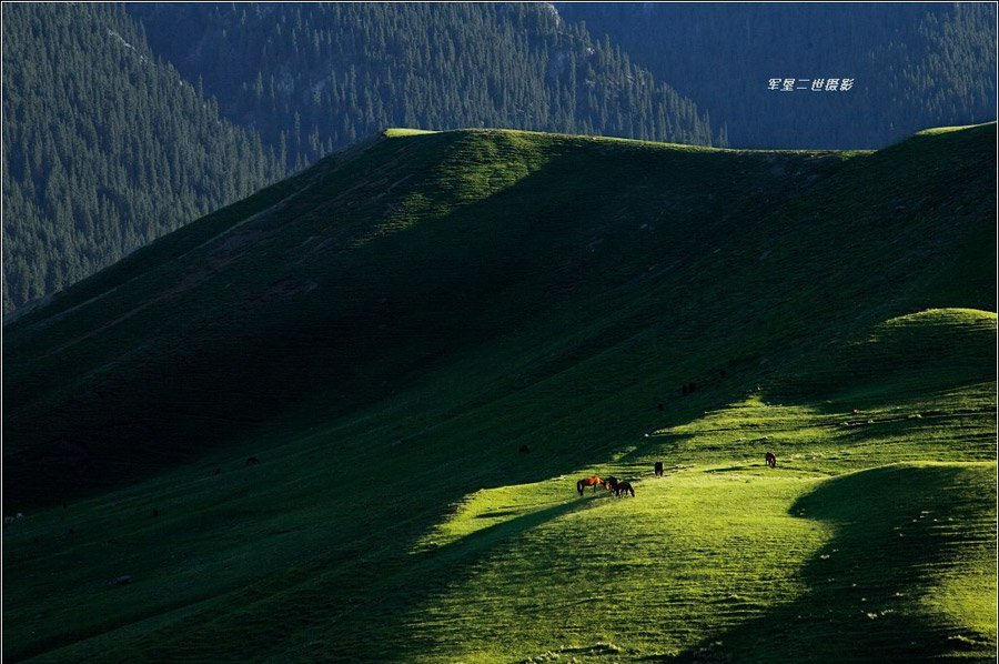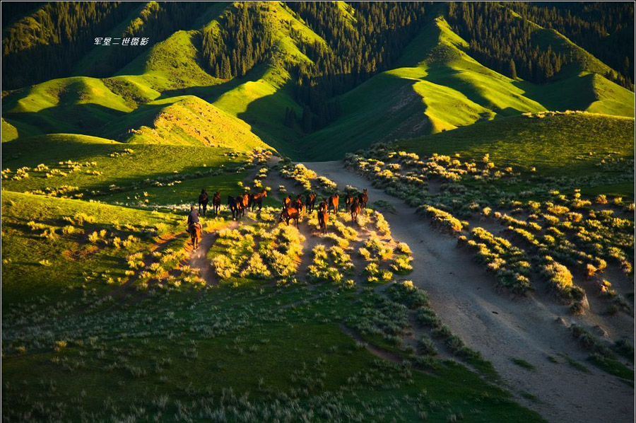 天山山脈把新疆分成兩部分:南邊是塔里木盆地;北邊是準(zhǔn)噶爾盆地。準(zhǔn)噶爾盆地西北邊緣的山地不很高,而且有很多缺口,大西洋、北冰洋的氣流能夠進(jìn)入,所以氣候比較濕潤(rùn),這里的草場(chǎng)優(yōu)良,畜牧業(yè)發(fā)達(dá)。(圖片來源:地理論壇,作者:軍墾二世)