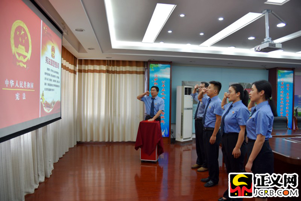 宣誓后,該院政治部主任指出,珍惜人生新的轉(zhuǎn)折點(diǎn),強(qiáng)化人民意識和責(zé)任意識,時刻維護(hù)憲法和法律的權(quán)威和尊嚴(yán),把誓言時刻銘記于心,堅(jiān)定不移為憲法規(guī)定的黨的崇高事業(yè)、憲法寫下的人民權(quán)力而不懈奮斗,堅(jiān)定不移做憲法的忠實(shí)崇尚者、嚴(yán)格遵守者、自覺運(yùn)用者、堅(jiān)定捍衛(wèi)者!