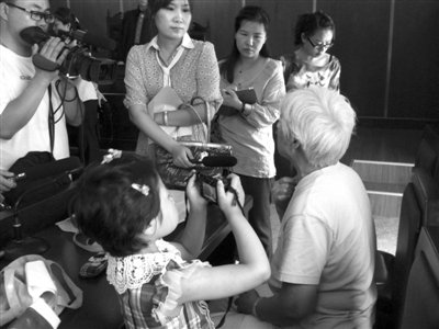 庭審后,瑩瑩的奶奶接受媒體采訪,瑩瑩則拿起相機(jī)給奶奶照相。