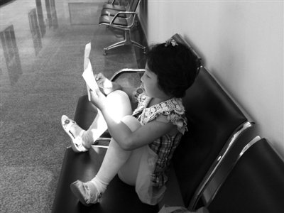 瑩瑩獨自坐在法院走廊的椅子上,拿著樂譜哼唱在幼兒園剛學(xué)的歌曲《愛的海洋》。
