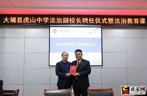 正義網(wǎng)梅州1月2日電(通訊員劉曉)“虎山中學(xué)是一所歷史悠久、文化底蘊(yùn)深厚的百年名校。很榮幸成為虎山中學(xué)的一員,剛剛接過聘書的那一刻,我既激動,又深感責(zé)任重大、使命光榮……”日前,廣東省大埔縣檢察院檢察長張映文受聘為大埔縣虎山中學(xué)法治副校長,并為該校300多名師生講授了一堂精彩的法治教育課。