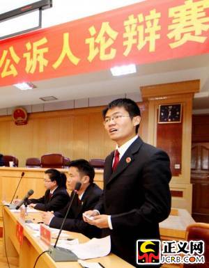 圖為:吳賀斌在全區(qū)檢察機關(guān)公訴人論辯賽上。