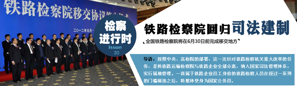 醞釀了多年的鐵路司法機關(guān)管理體制改革進入2012年有了重大成果。1月12日,山西省檢察院和太原鐵路局率先在全國第一個簽訂全面移交協(xié)議。據(jù)悉,全國多個鐵路運輸檢察院屬地移交也將在今年內(nèi)陸續(xù)完成。