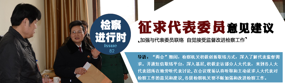 2月11日,河南省三門峽市檢察院派出21個(gè)小組42名干警深入三門峽市兩會(huì)現(xiàn)場(chǎng),廣泛征求該市人大代表、政協(xié)委員對(duì)三門峽市檢察院工作報(bào)告的意見(jiàn)建議。人大代表、政協(xié)委員對(duì)檢察機(jī)關(guān)誠(chéng)懇接受監(jiān)督,不斷改進(jìn)作風(fēng)的作法給予高度評(píng)價(jià)。 |