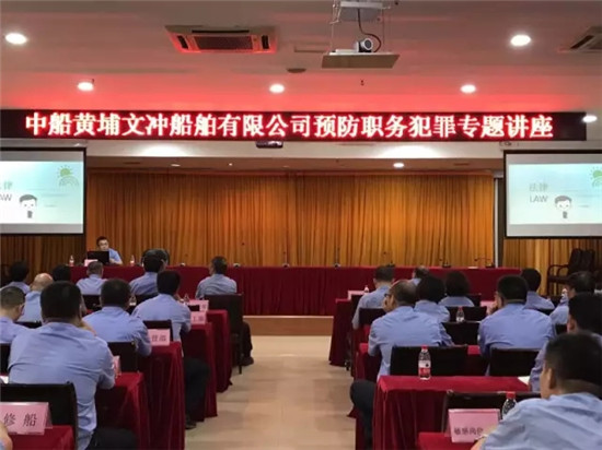 對(duì)于這樣的大企業(yè),預(yù)防職務(wù)犯罪工作可以說(shuō)是非常重要的了。7月6日下午,正義君有幸參加了中船黃埔文沖船舶有限公司預(yù)防職務(wù)犯罪專題講座,黃埔區(qū)檢察院檢察官李敬華為黃埔文沖職員進(jìn)行了以“強(qiáng)化廉政意識(shí) 預(yù)防職務(wù)犯罪”為主題的講課。對(duì)于如何預(yù)防職務(wù)犯罪,李敬華檢察官給出“慎獨(dú)、慎初、慎色、慎友、慎好、慎欲”的建議。