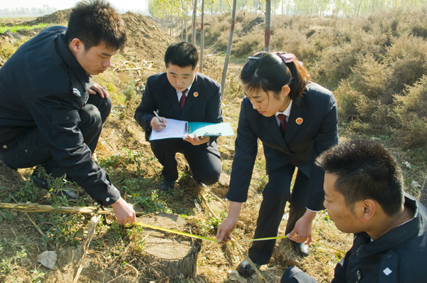 10月30日,涿州市檢察院公訴檢察官會同公安民警在該市大豹子村北路旁測量被濫伐的樹木。今年以來,河北省涿州市先后發(fā)生兩起未經(jīng)林業(yè)部門許可濫伐樹木共計(jì)1032棵141.67立方米,涿州市檢察官及時(shí)介入現(xiàn)場固定證據(jù),對涉嫌濫伐樹木的五人先后依法提起了公訴,有力的打擊了犯罪,促進(jìn)了城鄉(xiāng)綠化亮化建設(shè)。