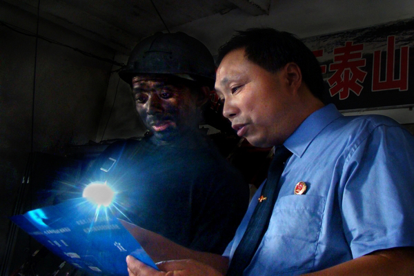近年來(lái),江西省豐城市檢察院高度重視礦區(qū)職務(wù)犯罪預(yù)防和安全生產(chǎn)。圖為該院河?xùn)|檢察室干警深入轄區(qū)內(nèi)國(guó)有流舍礦開(kāi)展法律知識(shí)和安全責(zé)任專題宣傳。