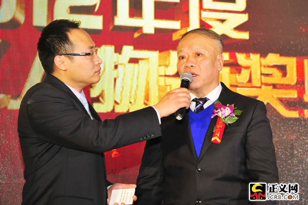 2012年度中國正義人物項全雄接受主持人采訪。閆昭 攝