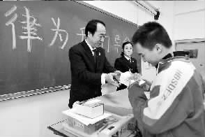 12月3日,河北省石家莊市長安區(qū)檢察院在河北師大附中舉行了“送法進校園”活動。圖為檢察干警將《未成年人網絡自護手冊》送到同學們手中。本報記者過虹 通訊員時寶喆攝