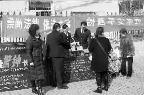 12月3日,山西省太原市迎澤區(qū)檢察院的檢察官走上街頭,開展以“崇尚法律,依法辦事”為主題的普法宣傳活動,干警向過往群眾發(fā)放宣傳材料,講解相關法律知識,提供法律咨詢,受到群眾歡迎。本報記者郭超美 通訊員杜麗娟 楊森攝