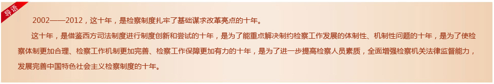 | 案件實(shí)行集中管理 促進(jìn)管理科學(xué)化 |  | 2011年,最高檢成立案件管理辦公室,對(duì)案件實(shí)行集中管理,胡澤君副檢察長(zhǎng)強(qiáng)調(diào)這是檢察機(jī)關(guān)貫徹落實(shí)科學(xué)發(fā)展觀,強(qiáng)化內(nèi)部監(jiān)督制約,提高檢察機(jī)關(guān)管理科學(xué)化水平,進(jìn)一步規(guī)范執(zhí)法行為,提高辦案質(zhì)量的戰(zhàn)略舉措![詳情] |