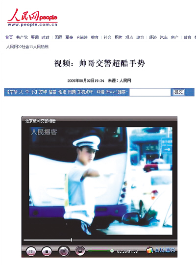 在網(wǎng)上,孟昆玉被譽為“北京最帥交警”,一段關(guān)于他的視頻在人民網(wǎng)位居排行榜第二。