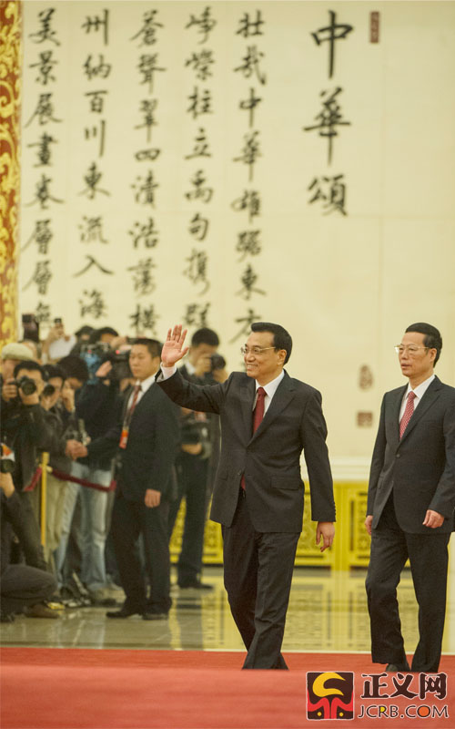 3月17日上午,十二屆全國(guó)人大一次會(huì)議閉幕后,國(guó)務(wù)院總理李克強(qiáng)在人民大會(huì)堂三樓金色大廳會(huì)見(jiàn)中外記者并回答記者提出的問(wèn)題。正義網(wǎng)記者程丁攝