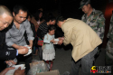 4月20日晚9時,四川邛崍市檢察院干警正向緊鄰 “4.20”蘆山7.0級地震震中的該市高何鎮(zhèn)靖口村的受災(zāi)群眾和參與搶險(xiǎn)救災(zāi)的干部、民兵、志愿者分發(fā)送去的盒飯。王弈 攝