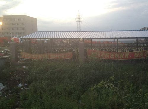“加強消防教育提高全民消防安全能力”“執(zhí)行消防安全法規(guī)搞好安全生產(chǎn)”這是懸掛在吉林德惠寶源豐禽業(yè)圍欄上的警示標(biāo)語,通過條幅的顏色判斷,它們已經(jīng)懸掛了很長時間?墒,誰會想到,恰恰就是在這里,發(fā)生了特大火災(zāi)事故。