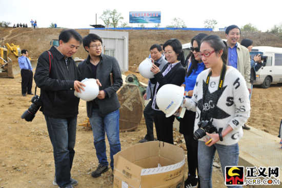 “看得見的正義”中央新聞媒體采訪團參觀河南省南陽市淅川縣渠首工地現(xiàn)場。閆昭 攝
