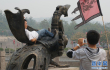 10月1日,在河南省焦作市影視城,一名游客騎在景觀雕塑上拍照留影。當(dāng)日是國(guó)慶長(zhǎng)假第一天,一些游人在旅游景點(diǎn)隨意攀爬、亂刻亂畫、亂丟垃圾,成為旅游的不和諧音符。 新華社發(fā)(楊帆 攝)