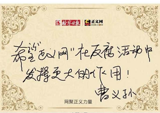 全國(guó)政協(xié)委員、中國(guó)政法大學(xué)教授曹義孫寄語:希望“正義網(wǎng)”在反腐活動(dòng)中發(fā)揮更大的作用! 正義網(wǎng)記者曹麗輝 攝