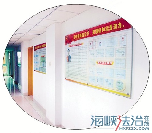 出電梯右轉(zhuǎn),一反其他樓層潔白如洗的走廊,這里的兩側(cè)墻面掛滿工作室的簡介!皠趧幽7妒菢(biāo)桿,勞模精神就是動力!奔t底黃字,鮮艷奪目,時刻激勵著勞模工作室團(tuán)隊乃至整個漳州檢察系統(tǒng)。