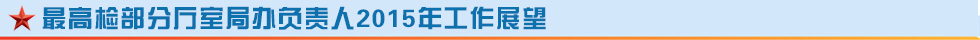 2015年,是全面推進(jìn)依法治國的開局之年,也是全面深化改革的關(guān)鍵之年,全國各級檢察機關(guān)要深入學(xué)習(xí)貫徹黨的十八大、十八屆三中、四中全會和中央政治局常委會議、中央政法工作會議精神,深入學(xué)習(xí)貫徹習(xí)近平總書記系列重要講話特別是對政法工作的重要指示精神,牢牢把握黨中央對政法工作、檢察工作提出的新要求,主動適應(yīng)形勢新變化,堅持法治引領(lǐng),強化司法規(guī)范,提升監(jiān)督能力,努力為全面建成小康社會創(chuàng)造安全穩(wěn)定的社會環(huán)境、公平正義的法治環(huán)境、優(yōu)質(zhì)高效的服務(wù)環(huán)境。為了謀劃和有效開展新一年的檢察工作,特邀請最高檢政治部及部分廳室局辦負(fù)責(zé)人就如何做好2015年各項檢察工作進(jìn)行展望,敬請關(guān)注。
