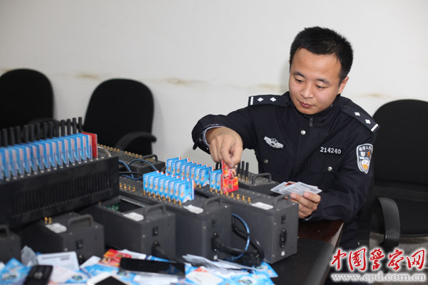10月30日晚,警方雷霆出擊,當(dāng)場抓獲陳某、呂某等犯罪嫌疑人8名,現(xiàn)場繳獲偽基站13套、手機(jī)電話卡近千張、贓款10多萬元。