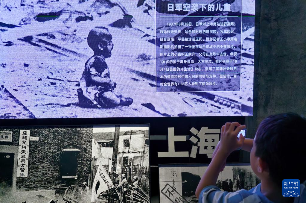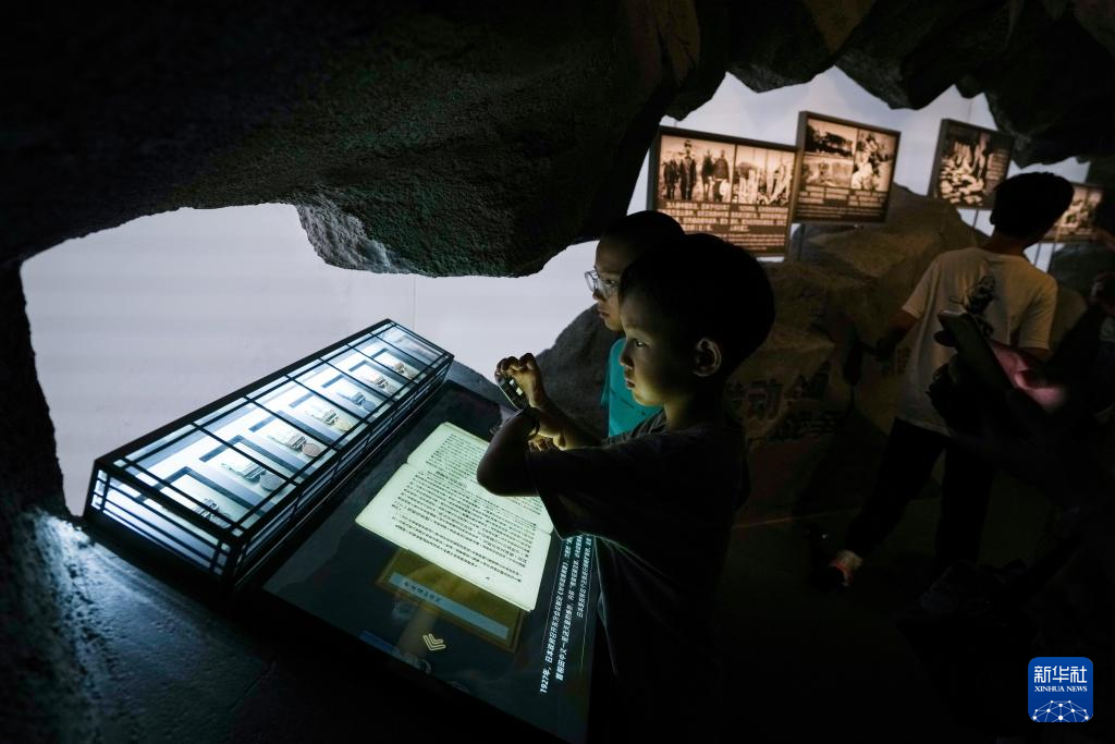 一名小朋友在中國人民抗日戰(zhàn)爭(zhēng)紀(jì)念館《為了民族解放與世界和平》主題展覽參觀(7月22日攝)。新華社記者 鞠煥宗 攝