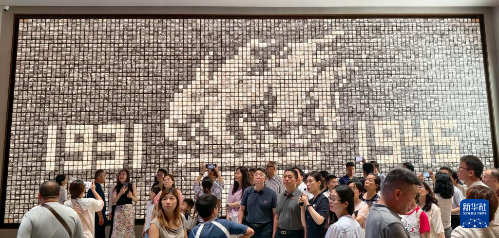 光影變幻中,象征勝利的火炬圖案在主題展覽的一面照片墻上亮起。
