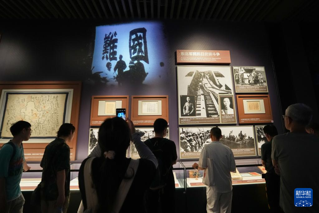 參觀者在中國人民抗日戰(zhàn)爭(zhēng)紀(jì)念館《為了民族解放與世界和平》主題展覽參觀(7月8日攝)。新華社記者 鞠煥宗 攝