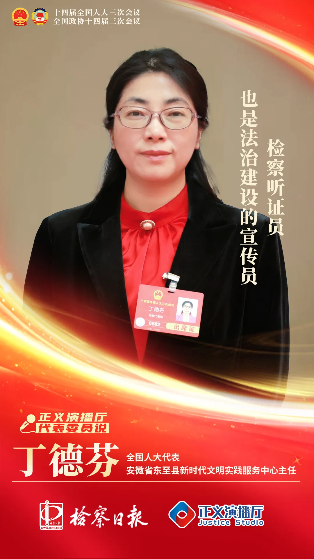 作為志愿者,丁德芬代表關注什么?作為聽證員,她又關注什么?今年全國兩會上,丁德芬代表接受本報正義會客廳遠程視頻采訪,暢談她的履職故事以及與“檢察”的故事。