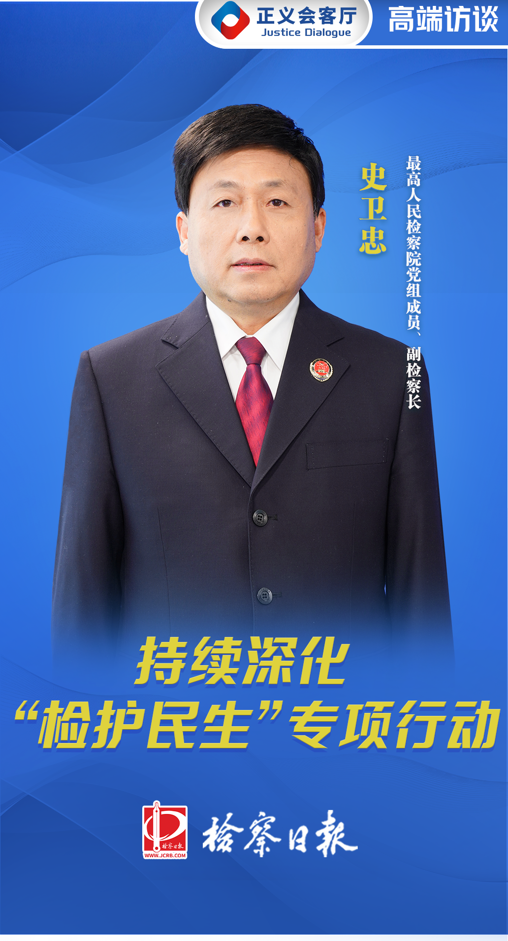 近日,最高人民檢察院黨組成員、副檢察長史衛(wèi)忠做客檢察日報社“正義會客廳”,就最高檢開展的“檢護民生”專項行動工作接受專訪。