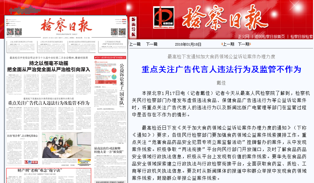 《通知》明確把食品、保健食品欺詐和虛假宣傳問題作為線索摸排工作的重點。要求重點關注未經(jīng)許可生產經(jīng)營食品和保健食品以及食品和保健食品標簽虛假標識聲稱違法行為,重點關注利用網(wǎng)絡、會議營銷、電視購物、直銷、電話營銷等方式違法營銷宣傳、欺詐銷售食品和保健食品違法行為,重點關注未經(jīng)審查發(fā)布保健食品廣告以及發(fā)布虛假違法食品、保健食品廣告違法行為,重點關注食藥監(jiān)、質檢等監(jiān)管部門在食品、保健食品欺詐和虛假宣傳等問題監(jiān)管方面的不作為、亂作為等行政違法行為。