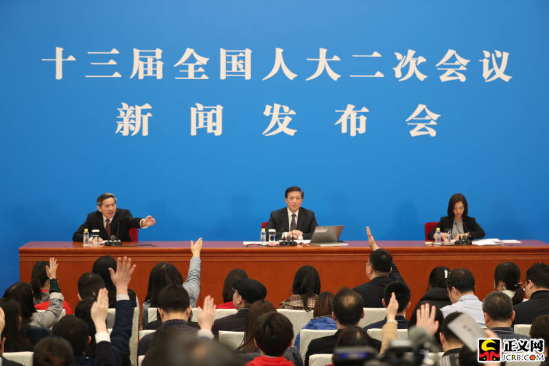 3月4日,十三屆全國人大二次會議在人民大會堂新聞發(fā)布廳舉行新聞發(fā)布會,由大會發(fā)言人張業(yè)遂就大會議程和人大工作相關的問題回答中外記者提問。正義網記者張哲 攝