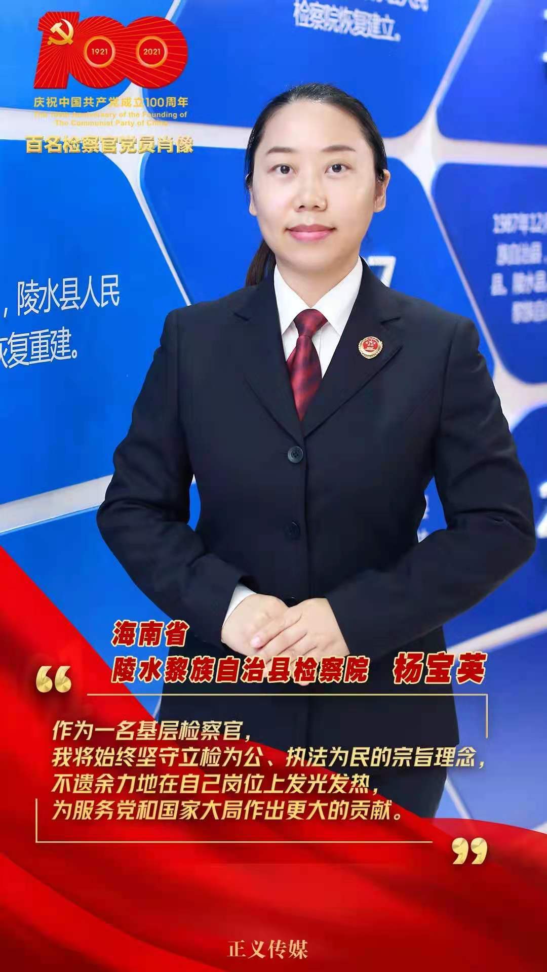 楊寶英,海南省陵水黎族自治縣檢察院第一檢察部主任,年齡34歲,黨齡12年。