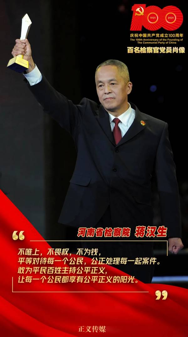 蔣漢生從檢28年,直接經(jīng)手辦理各類重大疑難案件500余起,其中刑事抗訴案件100余起。2005年,他被評(píng)為中國(guó)年度十大法治人物,同年獲評(píng)全國(guó)模范檢察官;2006年,當(dāng)選第六屆中國(guó)十大杰出檢察官;2010年,被評(píng)選為十年法治人物;2018年12月,當(dāng)選改革開放40周年政法系統(tǒng)新聞?dòng)绊懥θ宋铩?/p>