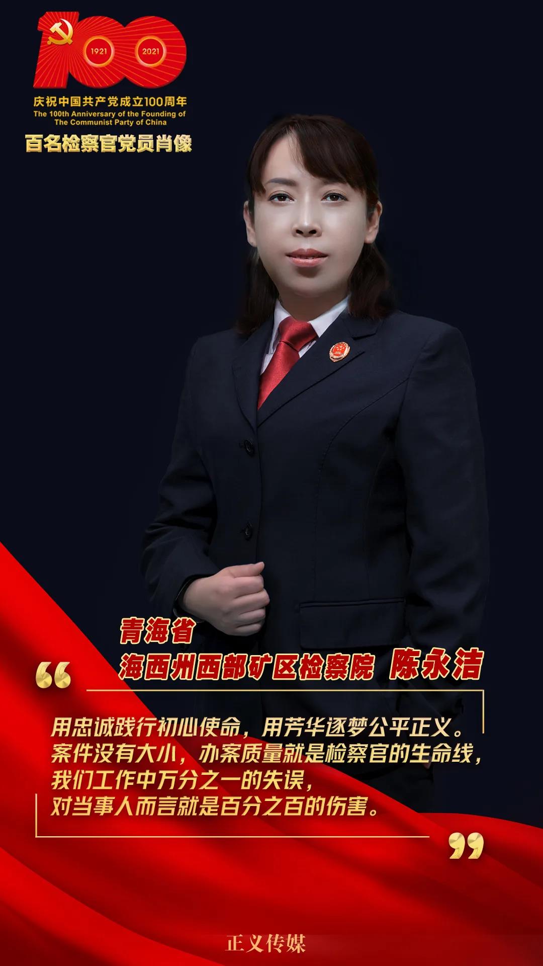 陳永潔從檢20余年,辦理各類刑事案件千余件,參與辦理了青海省首例“村霸”惡勢力犯罪案等多個(gè)重大復(fù)雜疑難案件。她是青海省黨的十九大代表,獲得中共中央、國務(wù)院、中央軍委頒發(fā)的“慶祝中華人民共和國成立70周年”紀(jì)念章。先后榮獲全國模范檢察官、全國三八紅旗手、全國優(yōu)秀共產(chǎn)黨員、全國最美檢察官等各類嘉獎(jiǎng)近70項(xiàng)。