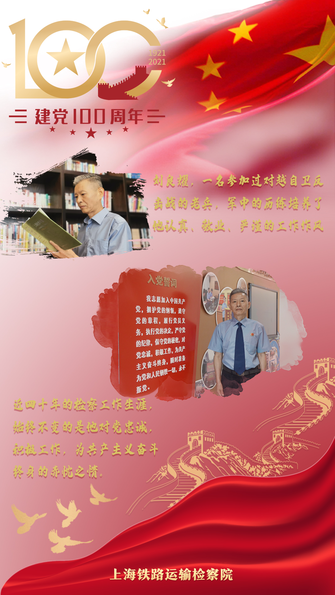 劉良耀,經(jīng)受過戰(zhàn)場洗禮的老兵,也是上海鐵路運(yùn)輸檢察院第一位軍轉(zhuǎn)干部。參加過對越自衛(wèi)反擊戰(zhàn)的他,在部隊(duì)培養(yǎng)了認(rèn)真、敬業(yè)、嚴(yán)謹(jǐn)?shù)墓ぷ髯黠L(fēng)。先后在上海鐵路運(yùn)輸檢察院辦公室、政治部、紀(jì)檢監(jiān)察工作,近四十年的檢察工作生涯,始終不變的是他對黨忠誠,積極工作,為共產(chǎn)主義奮斗終身的赤忱之情。不忘初心、牢記使命,讓我們用實(shí)實(shí)在在的工作為黨旗添光彩!