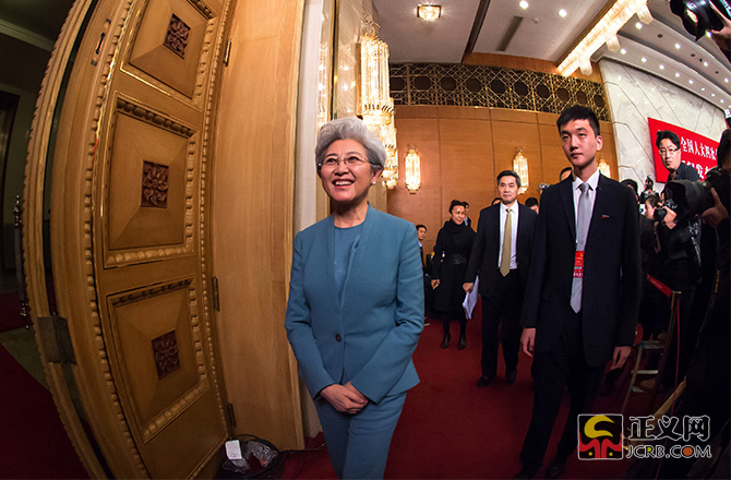 3月4日,十二屆全國人大四次會議在人民大會堂舉行新聞發(fā)布會,大會發(fā)言人傅瑩回答中外記者的提問。本次發(fā)布會共有18名中外記者提問,其中11位記者提問涉及法治話題,占提問總數(shù)的61%。民法典的編纂工作、慈善法、推進全面依法治國、全國人大審議境外非政府組織管理法草案、全國人大立法、反腐敗、《中華人民共和國反家庭暴力法》、稅收法、涉黃涉毒或者微博禁言的演員、政府依法行政、《大氣污染防治法》等。正義網(wǎng)記者程丁攝