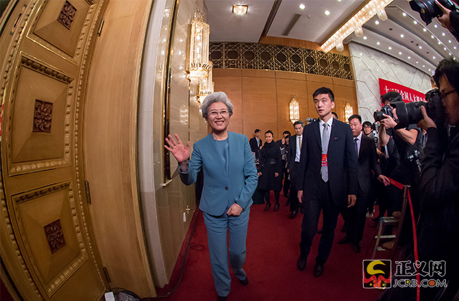 3月4日,十二屆全國(guó)人大四次會(huì)議在人民大會(huì)堂舉行新聞發(fā)布會(huì),大會(huì)發(fā)言人傅瑩回答中外記者的提問(wèn)。本次發(fā)布會(huì)共有18名中外記者提問(wèn),其中11位記者提問(wèn)涉及法治話題,占提問(wèn)總數(shù)的61%。民法典的編纂工作、慈善法、推進(jìn)全面依法治國(guó)、全國(guó)人大審議境外非政府組織管理法草案、全國(guó)人大立法、反腐敗、《中華人民共和國(guó)反家庭暴力法》、稅收法、涉黃涉毒或者微博禁言的演員、政府依法行政、《大氣污染防治法》等。正義網(wǎng)記者程丁攝