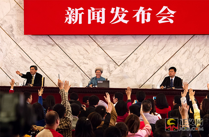 3月4日,十二屆全國人大四次會議在人民大會堂舉行新聞發(fā)布會,大會發(fā)言人傅瑩回答中外記者的提問。本次發(fā)布會共有18名中外記者提問,其中11位記者提問涉及法治話題,占提問總數(shù)的61%。民法典的編纂工作、慈善法、推進全面依法治國、全國人大審議境外非政府組織管理法草案、全國人大立法、反腐敗、《中華人民共和國反家庭暴力法》、稅收法、涉黃涉毒或者微博禁言的演員、政府依法行政、《大氣污染防治法》等。正義網(wǎng)記者程丁攝
