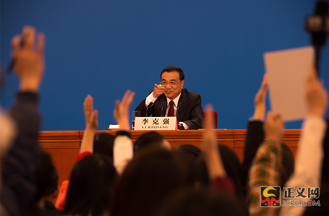 3月16日上午,國務(wù)院總理李克強(qiáng)在人民大會堂三樓金色大廳會見采訪十二屆全國人大四次會議的中外記者,并回答記者提問。正義網(wǎng)記者程丁攝