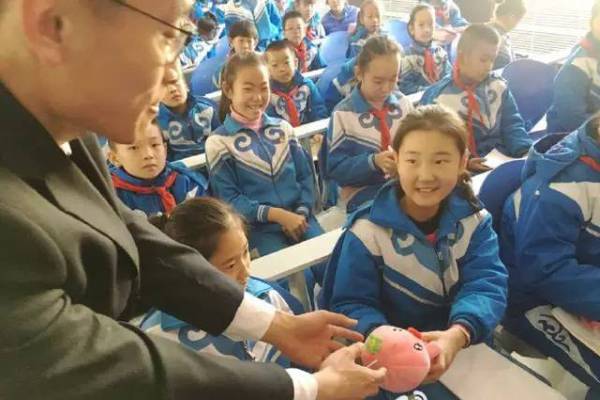 檢察官贈送毛絨玩具與學(xué)生進行互動