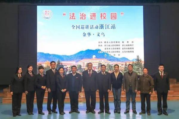 義烏中學(xué)校長(zhǎng)朱躍望致辭,金華市人民檢察院郭土華副檢察長(zhǎng)及麗水市檢察院、義烏市檢察院、義烏市教育局、團(tuán)市委、關(guān)工委等單位領(lǐng)導(dǎo)、部門負(fù)責(zé)人來到現(xiàn)場(chǎng)